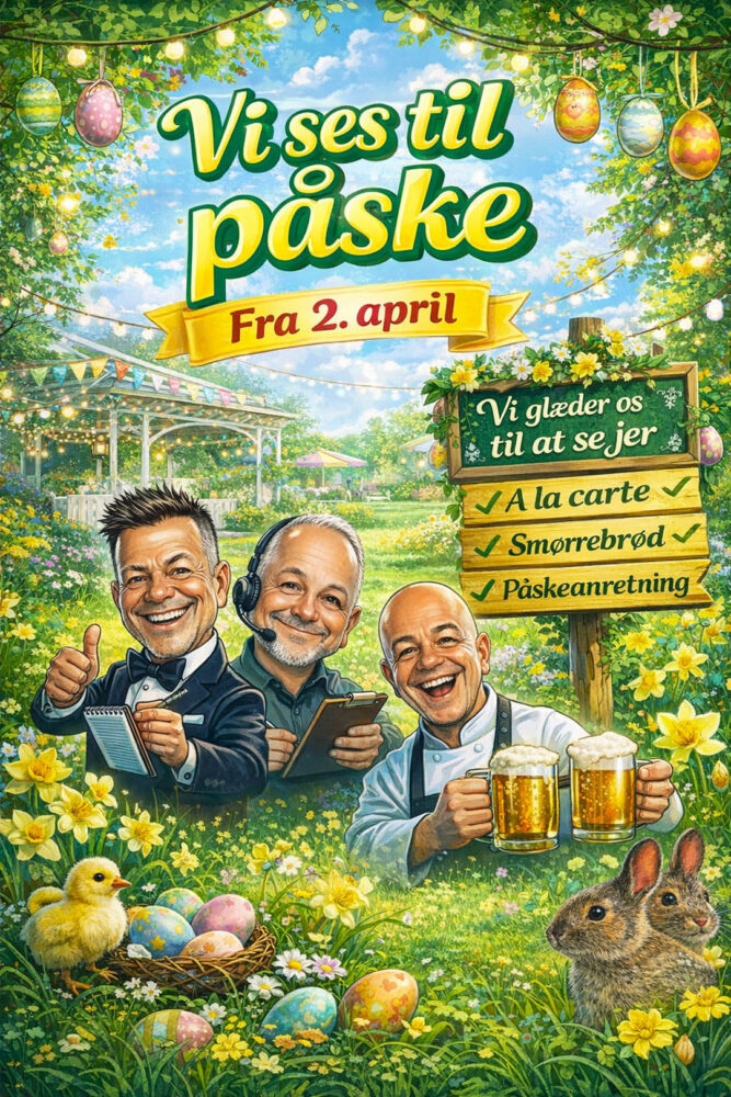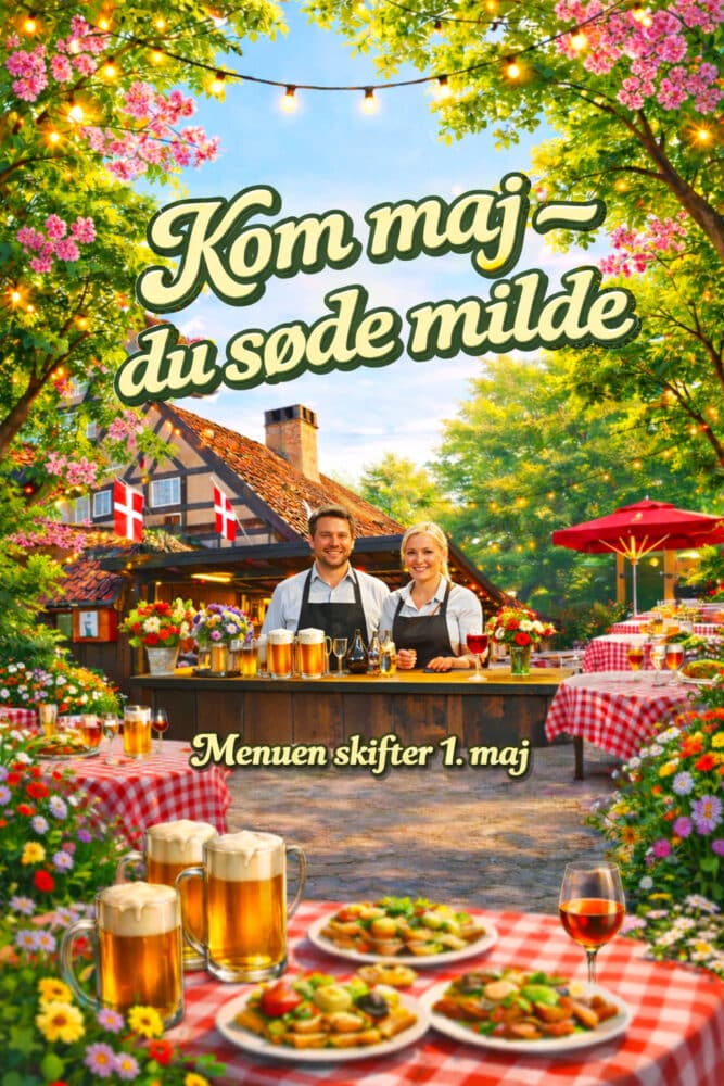 Vi præsenterer en regning pr. bord/selskab. Samlet afregning for al mad og drikke. Menuen ændres 1. maj.